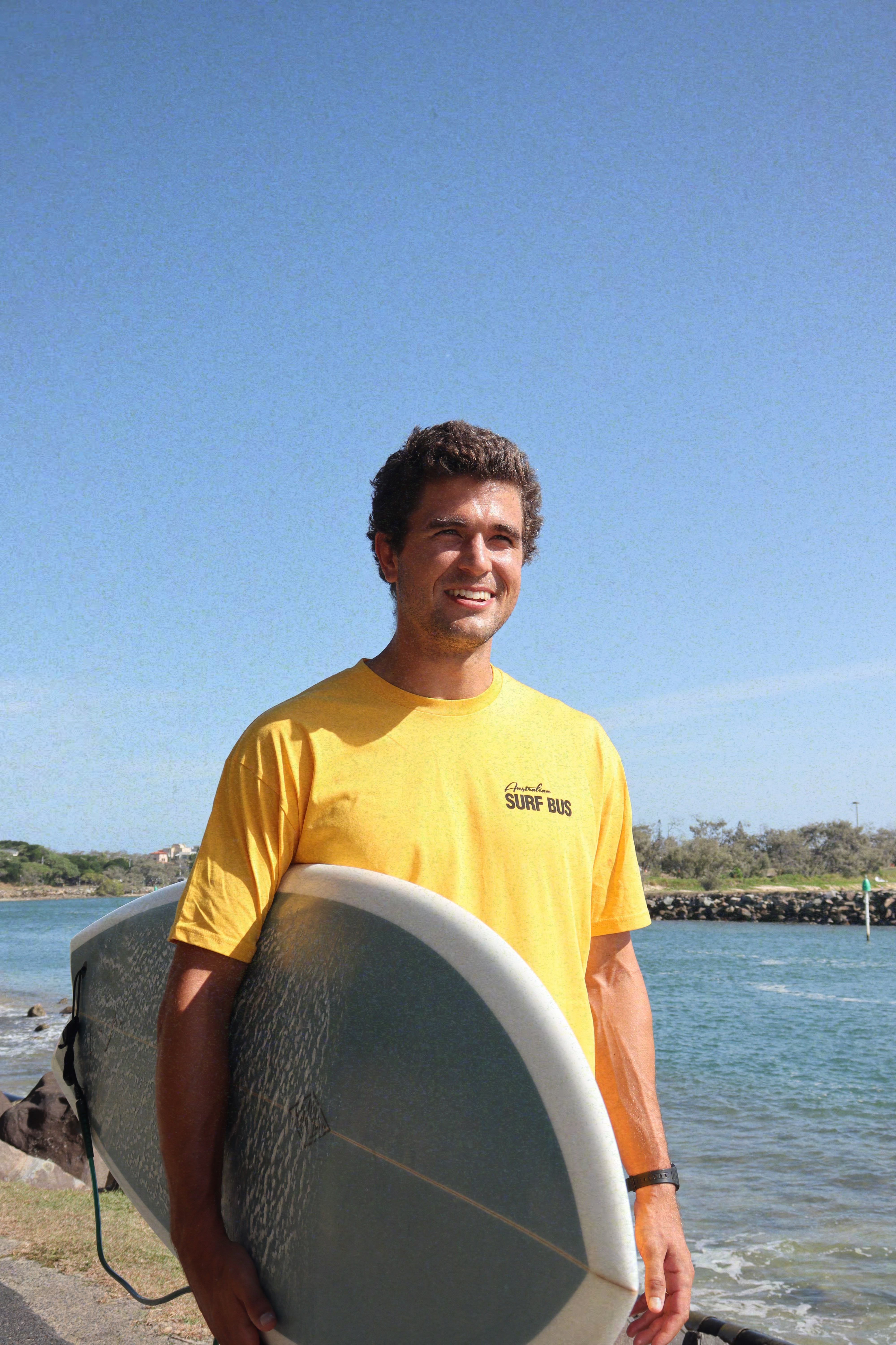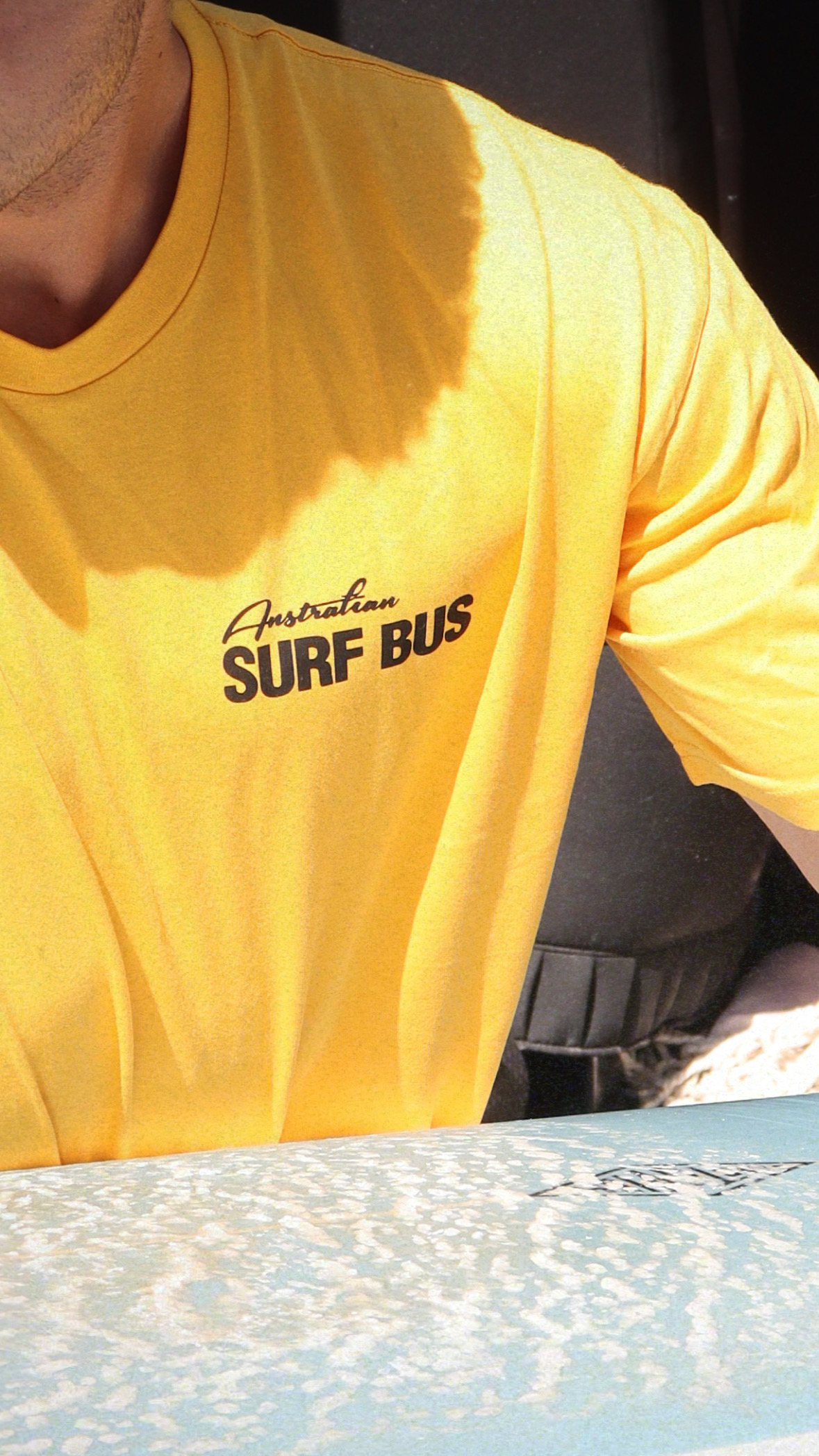 Australian Surf Bus director Seb Higgins-George saying this range of t-shirts is the grooviest design yet.